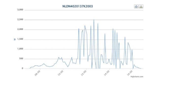 Graph below shows Omnik 3kWp inverter October 2013 clearly showing loss in generation throughout the day.