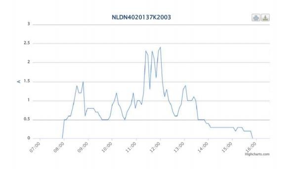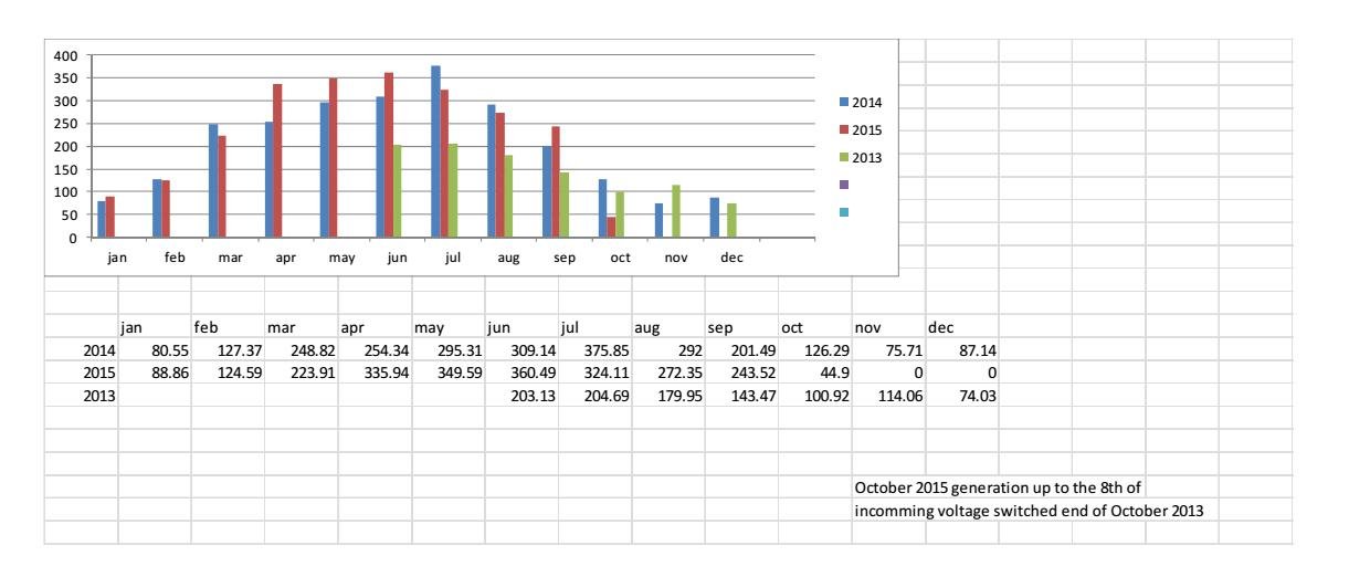 Graph below shows same Omnik 3kWp inverter October 2014 after PV+ technology has been installed. Clearly showing no over-voltage shut down and loss of generation.